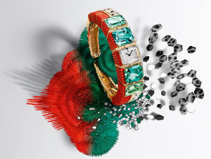 Cartier brings a new hybrid to life, part animal, part plant, by combining gadrooned coral, panther spots, and fine, precious stones.
