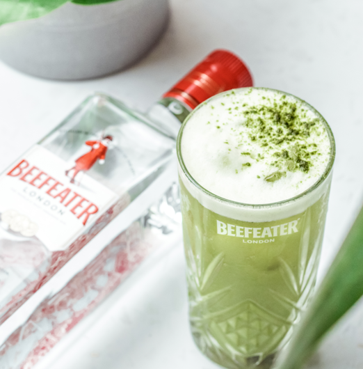 Ingredients: 50ml Beefeater Dry or 24 | Bar spoon matcha tea | 30ml fresh pineapple juice | 10ml fresh lemon juice | 50ml coconut milk | 40ml soda water | Garnish: Matcha dusting